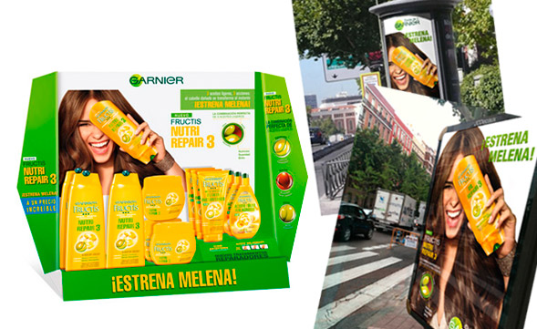 Lanzamiento Fructis Nutri Repair 3: dispensador gama sobremesa y publicidad en columnas y mupis.